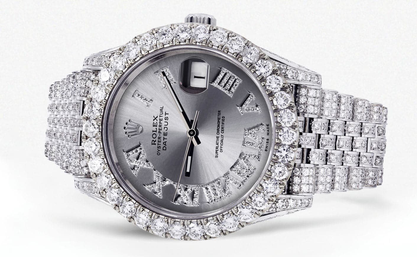 Rolex Datejust Iced Out Replica Watch – Silver with Roman Numerals